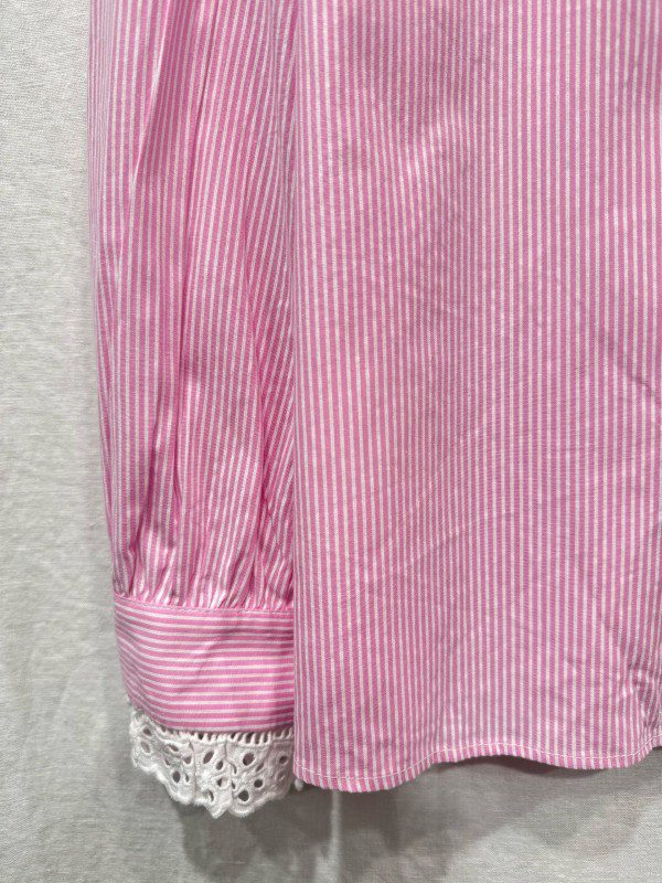 La chemise apporte une touche fraîche et féminine à votre garde-robe. Son motif à rayures s’associe à de délicats volants blancs au col, à la patte de boutonnage et aux poignets pour un look chic, légèrement rétro et idéal pour le printemps. Légère, confortable et élégante, elle se porte aussi bien rentrée dans un jean que sur une jupe fluide.