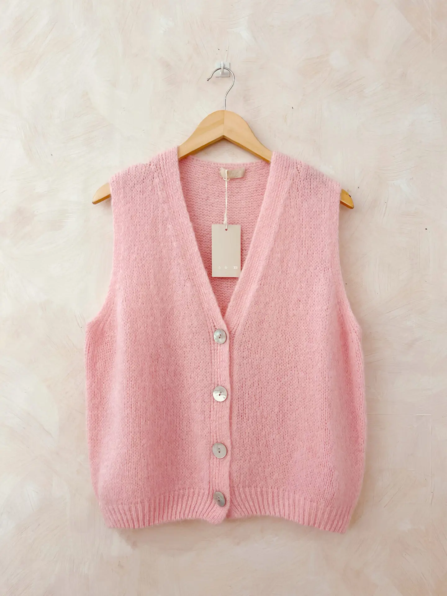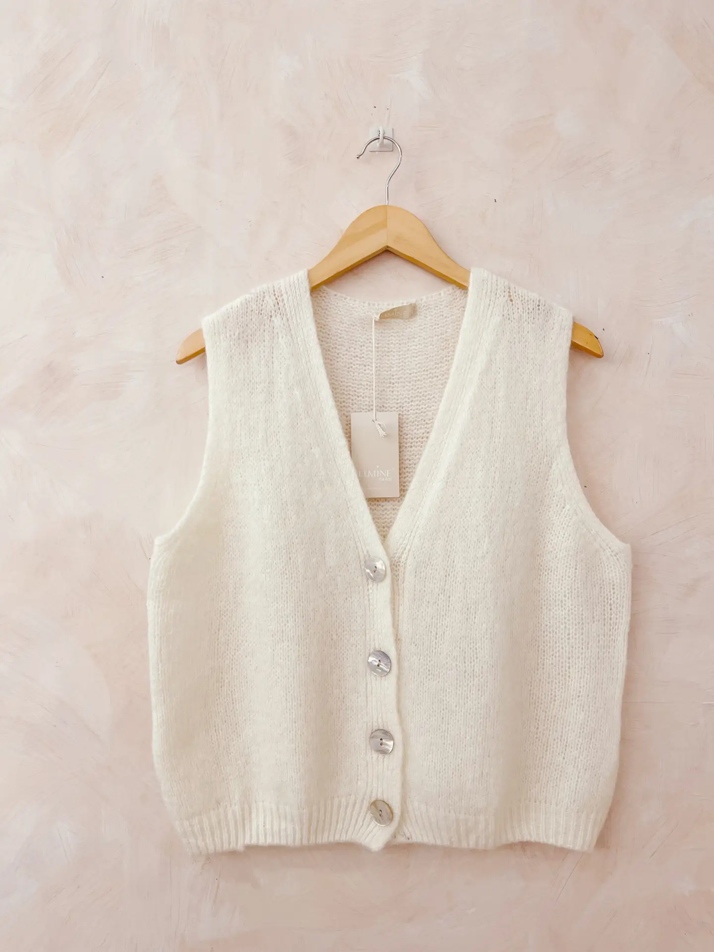Gilet sans manches italien, parfait pour le printemps, en acrylique et mohair, doux et léger. Ideal pour superposer.