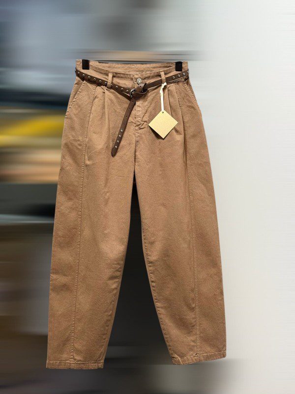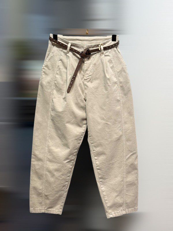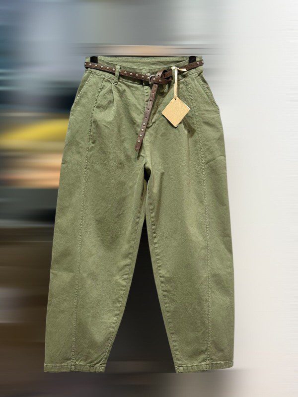 Pantalon ajusté en coton italien avec ceinture.